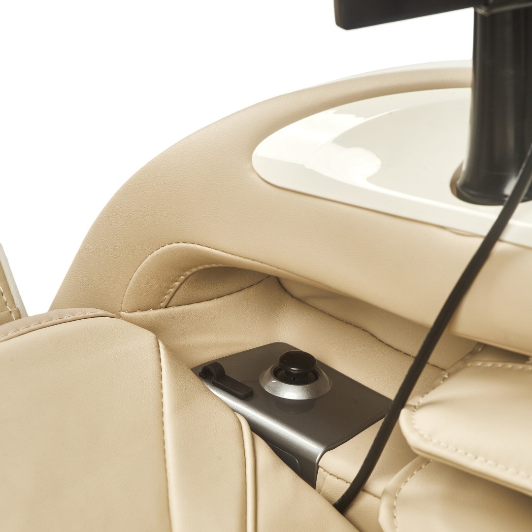 - В комплекте удобная подставка под телефон или планшет, которым можно управлять специальным джойстиком, встроенным в подлокотник, не отвлекаясь от массажа