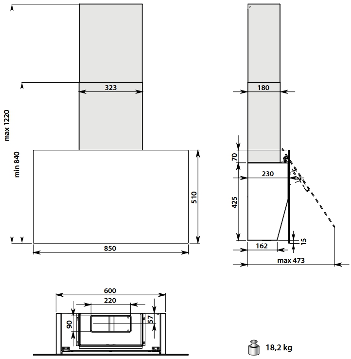 - Габариты, В х Ш х Г, мм: 510 х 850 х 230