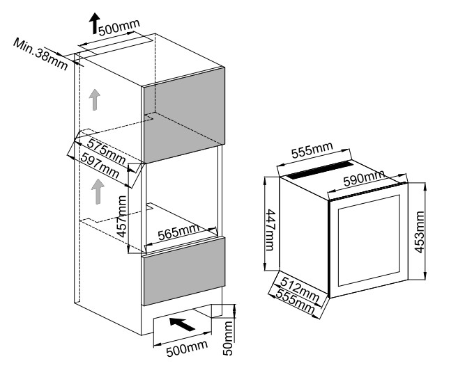 - Встраиваемый в колонну винный холодильник;